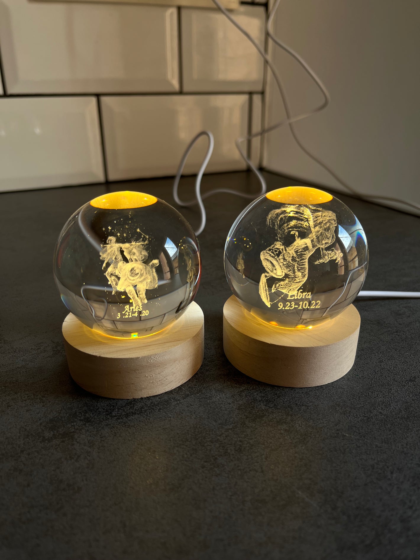 Each sphere is engraved using high-definition 3D technology. The zodiac symbol and constellation are clearly visible from any angle, even when the light is off.
