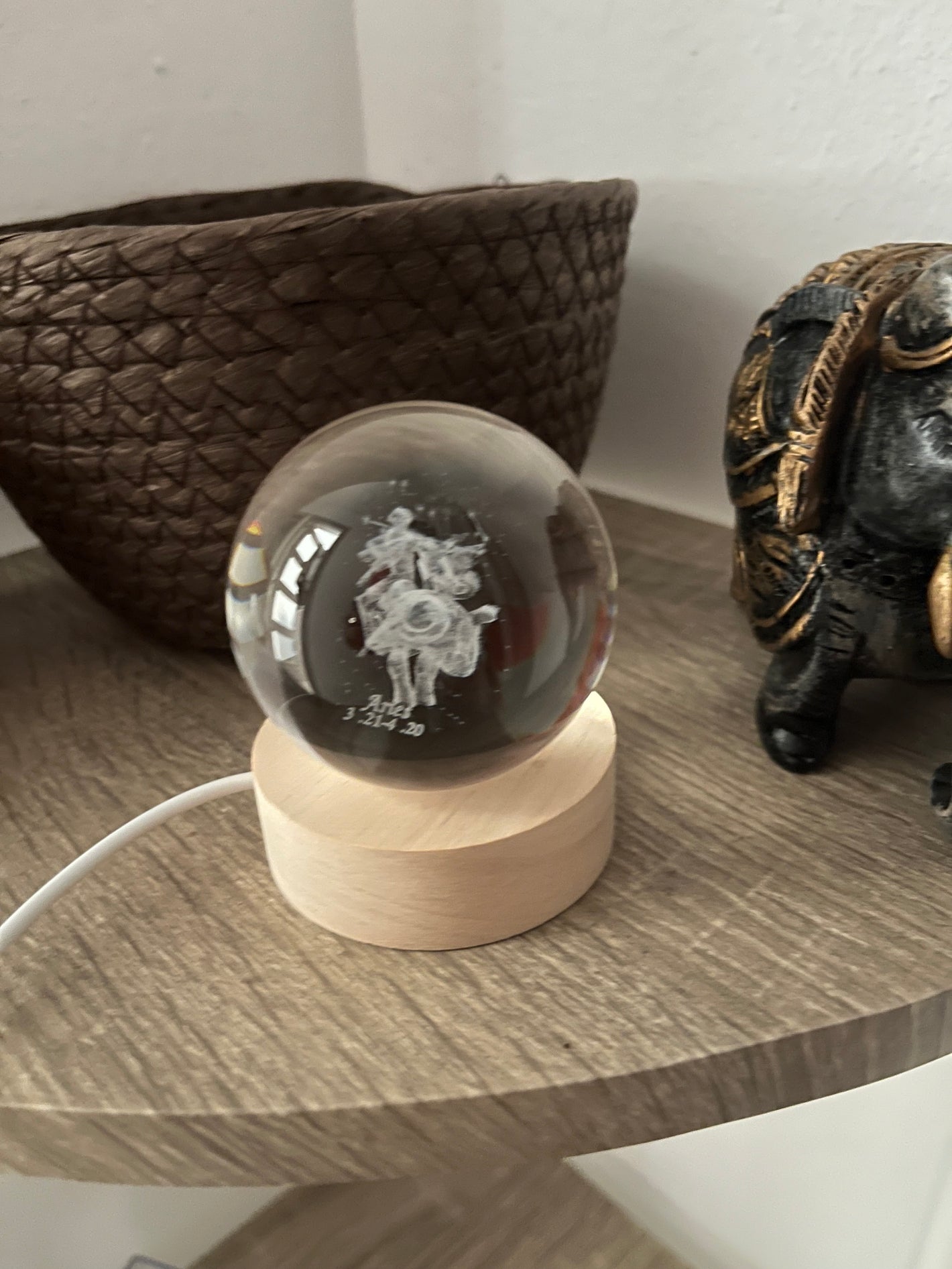 “I wanted something meaningful, not just ‘another lamp.’ This one’s made of thick crystal, you can really feel the quality. The base lights up and the Gemini symbol looks stunning.”